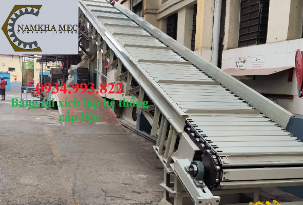 Băng tải xích là một loại hệ thống băng tải cơ khí dùng để vận chuyển vật liệu hoặc sản phẩm dọc theo một dây chuyền sản xuất hoặc kho bãi.